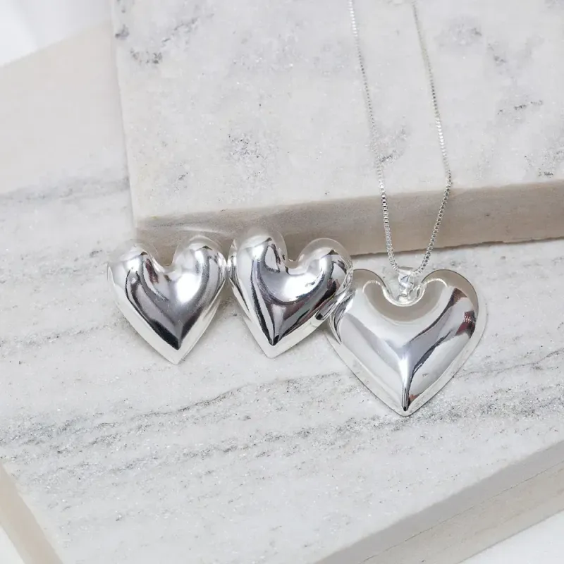 CONJUNTO CORAÇÃO LISO ABAULADO BANHO PRATA