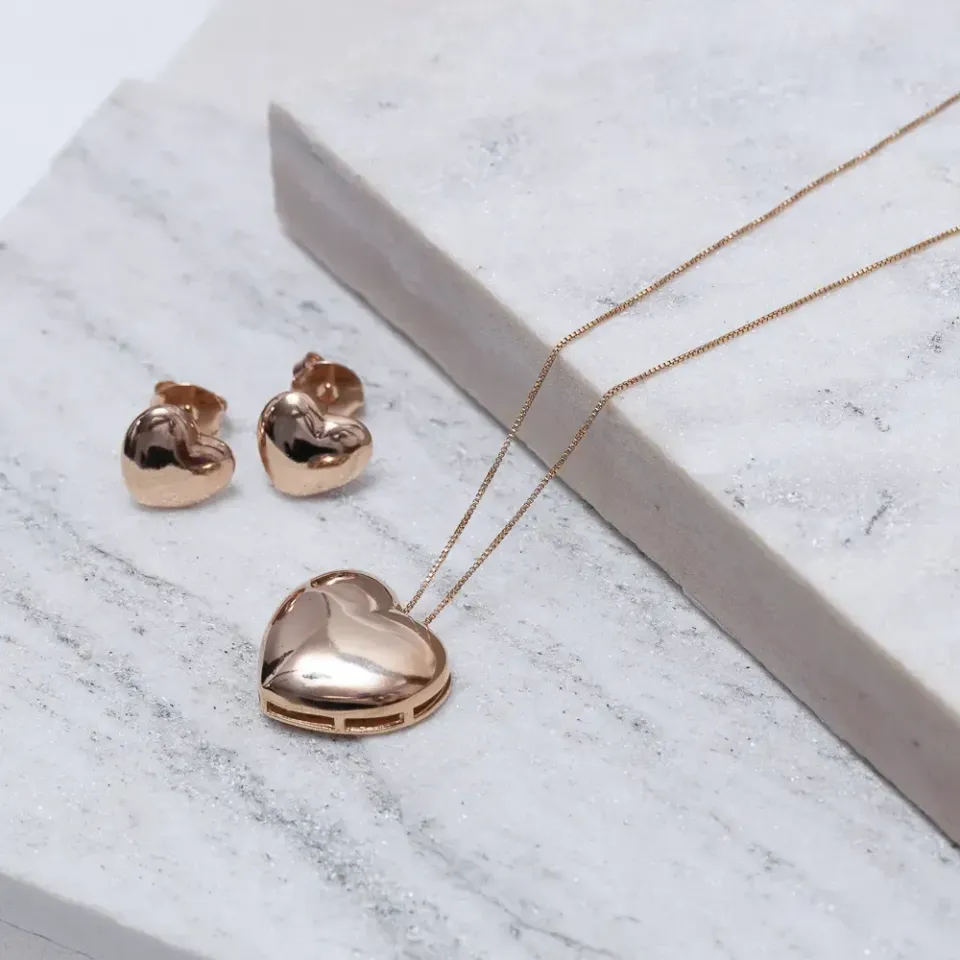 Conjunto Coração Liso Abaulado em banho Rosé