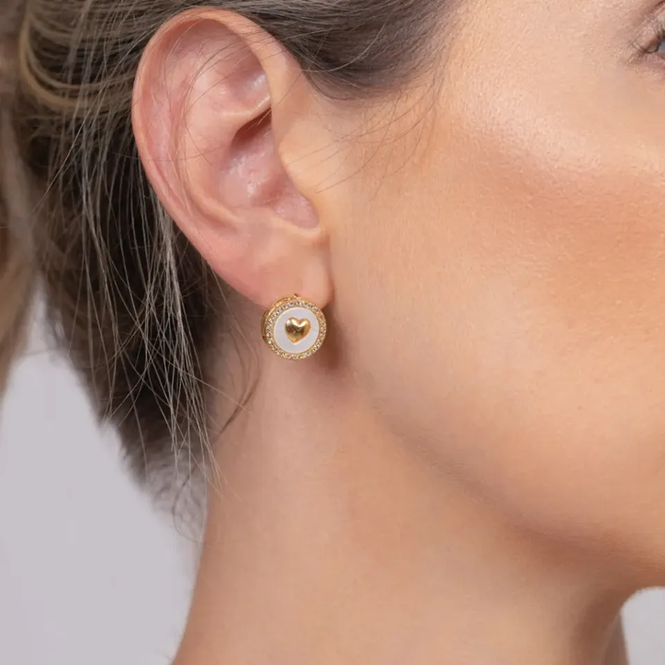 CONJUNTO CORAÇÃO MADRE PÉROLA E ZIRCÔNIAS CRISTAS BANHO OURO 18K