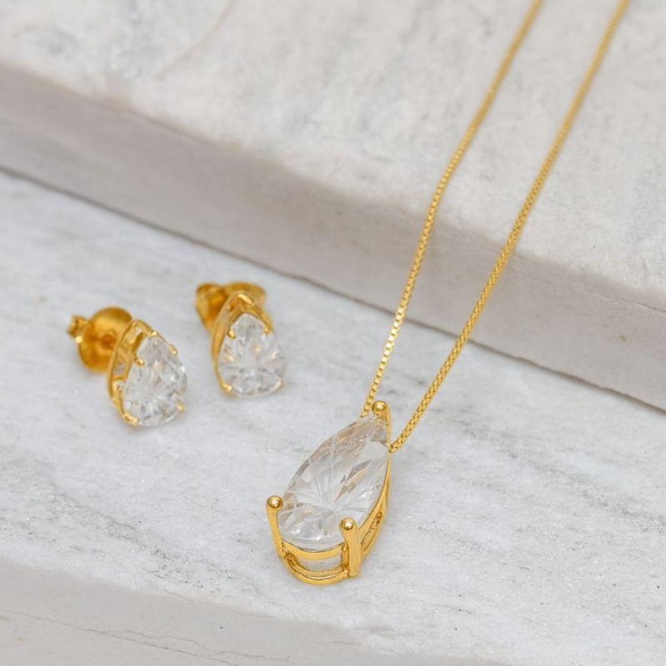 CONJUNTO CRISTAL BRANCO M BANHO OURO 18K