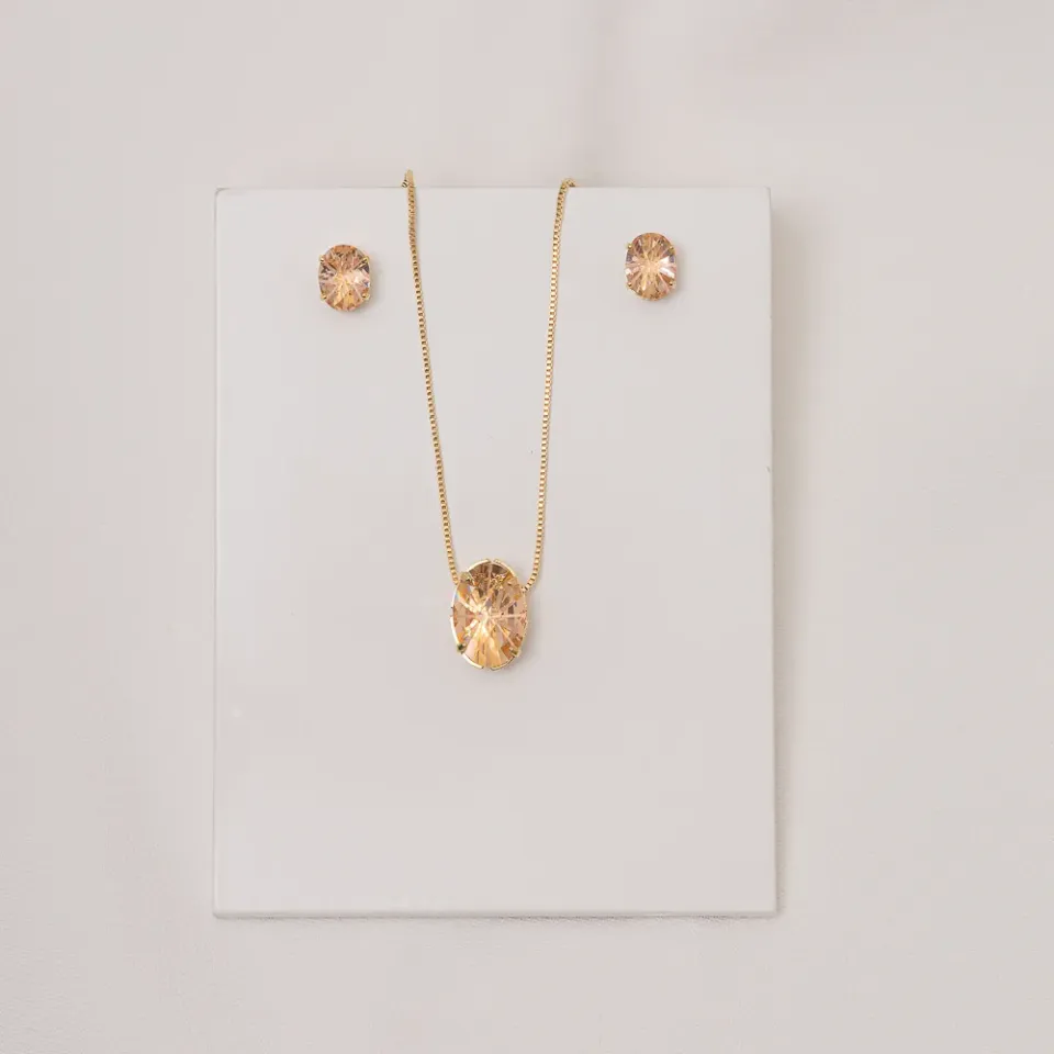 CONJUNTO CRISTAL OVAL ROSÉ BANHO OURO 18K
