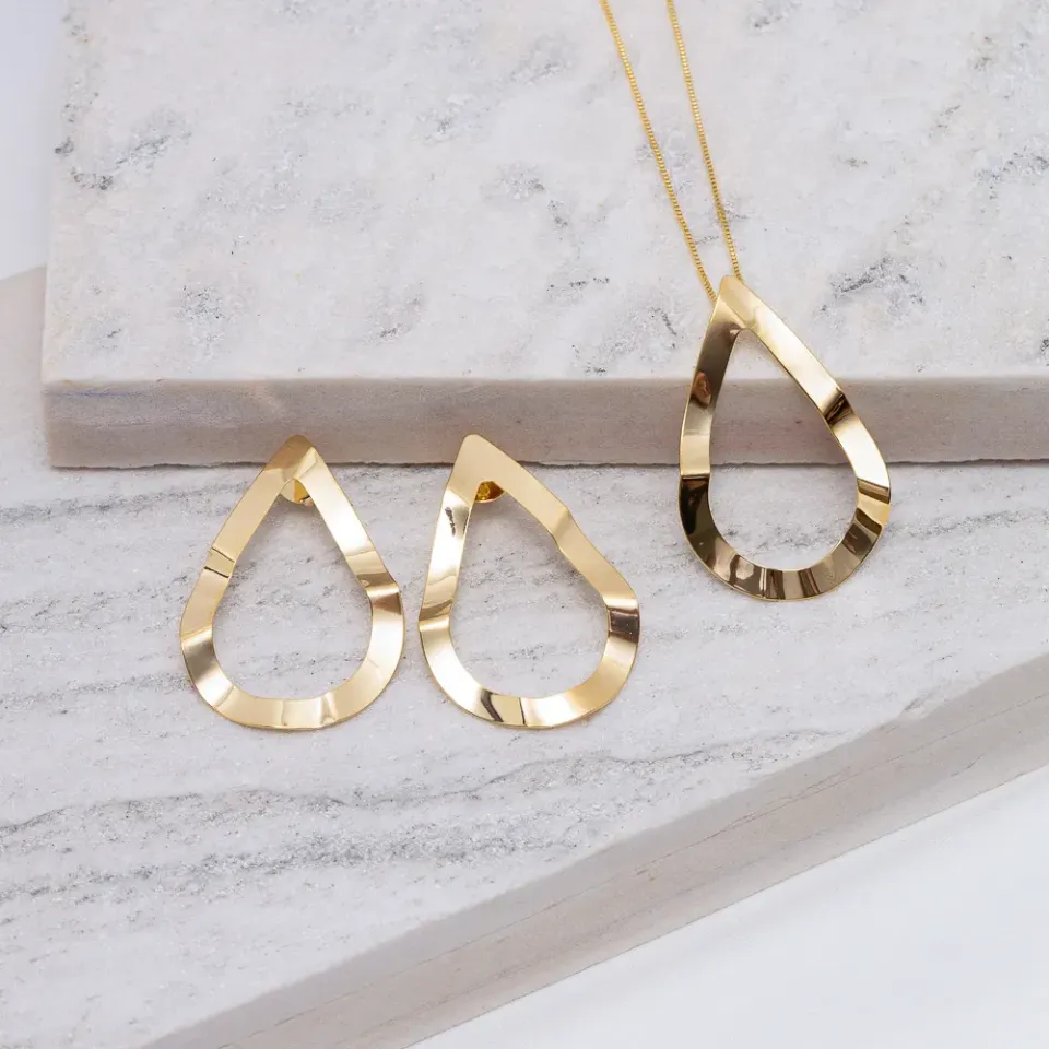 Conjunto Gota Grande Vazado em banho Ouro 18K