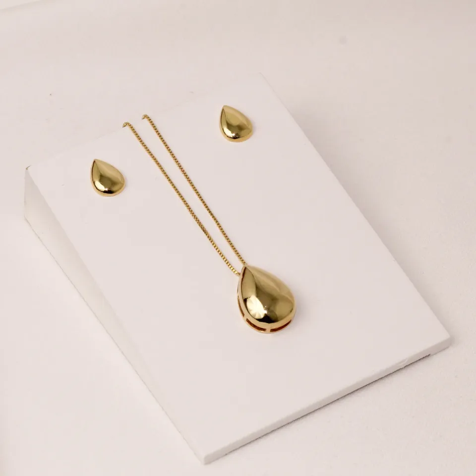 CONJUNTO GOTA LISO BANHO OURO 18K