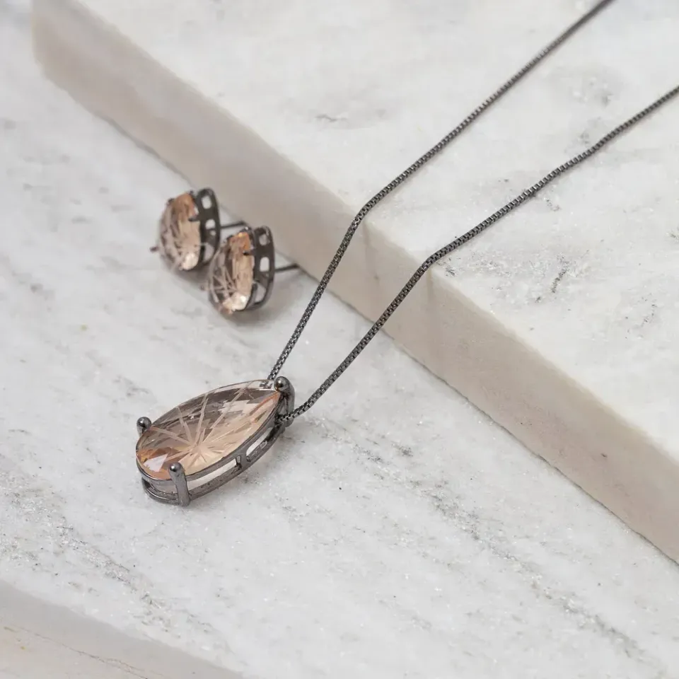 Conjunto Gota Rosé Mescla G em banho Ródio Negro