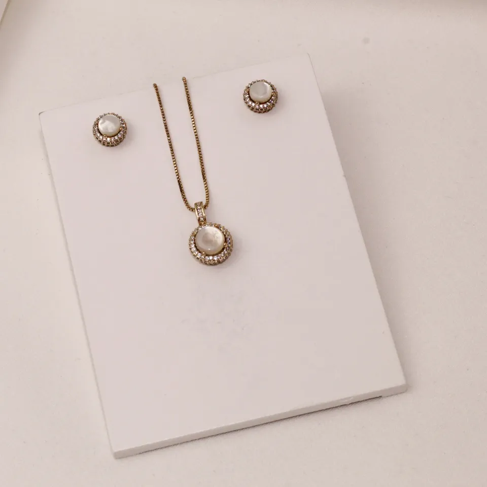 CONJUNTO MADRE PÉROLA BANHO OURO 18K