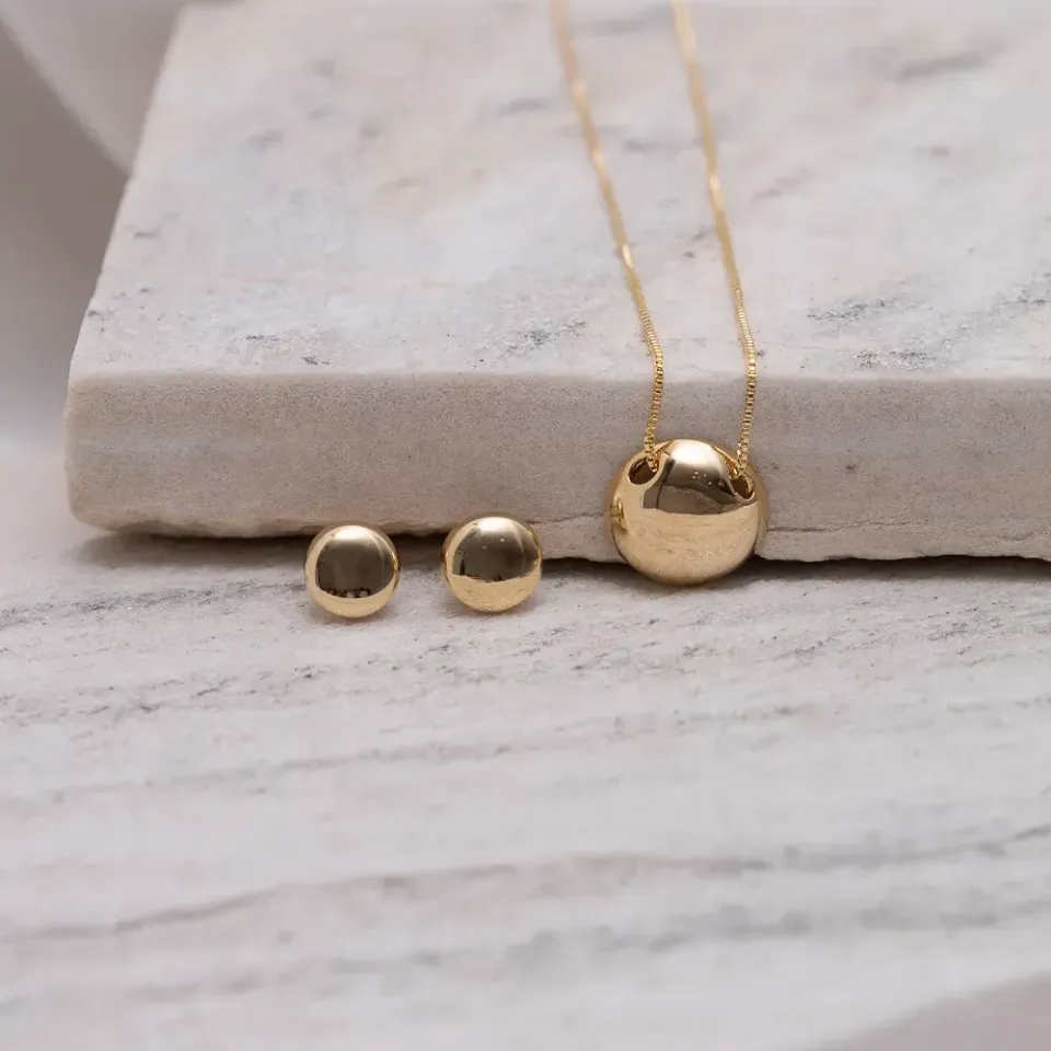 CONJUNTO MEIA BOLA LISA BANHO OURO 18K