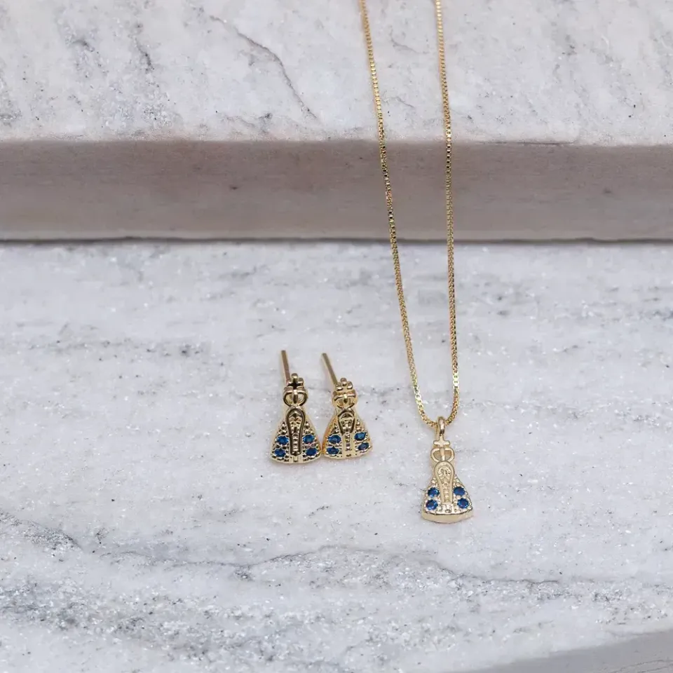 CONJUNTO NOSSA SENHORA P BANHO OURO 18K