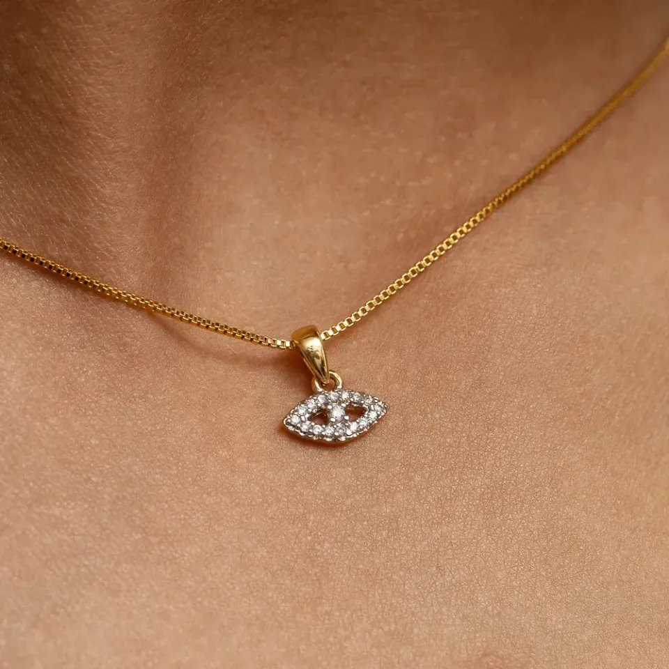 CONJUNTO OLHO GREGO MINI COM ZIRCÔNIAS BANHO OURO 18K