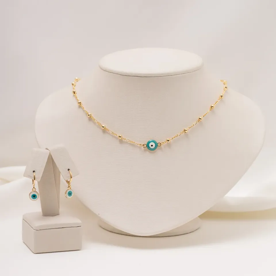 CONJUNTO OLHO GREGO VERDE BANHO OURO 18K