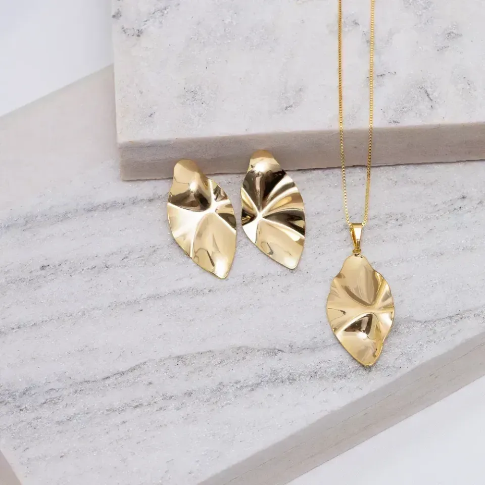 CONJUNTO ORGÂNICO LOSANGO BANHO OURO 18K