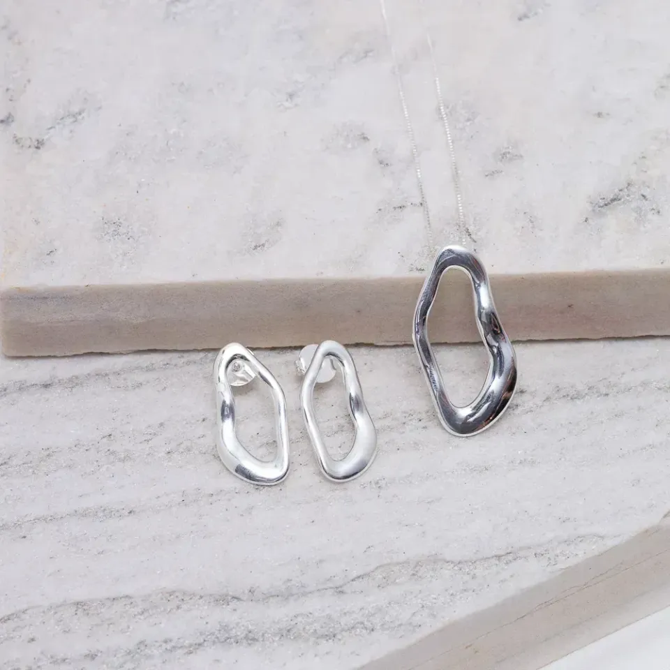 CONJUNTO ORGÂNICO LOSANGO VAZADO BANHO PRATA