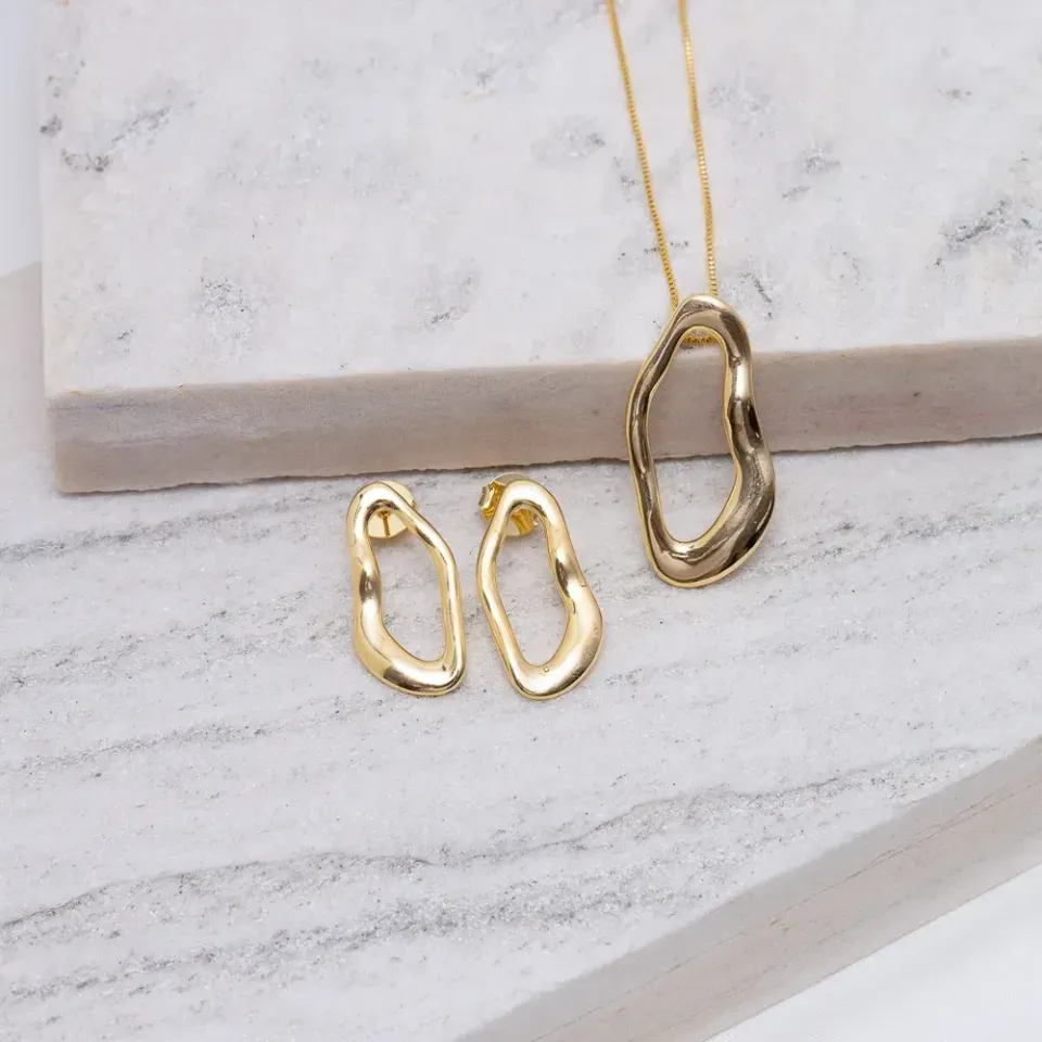 Conjunto Orgânico Losango vazado em banho Ouro 18K