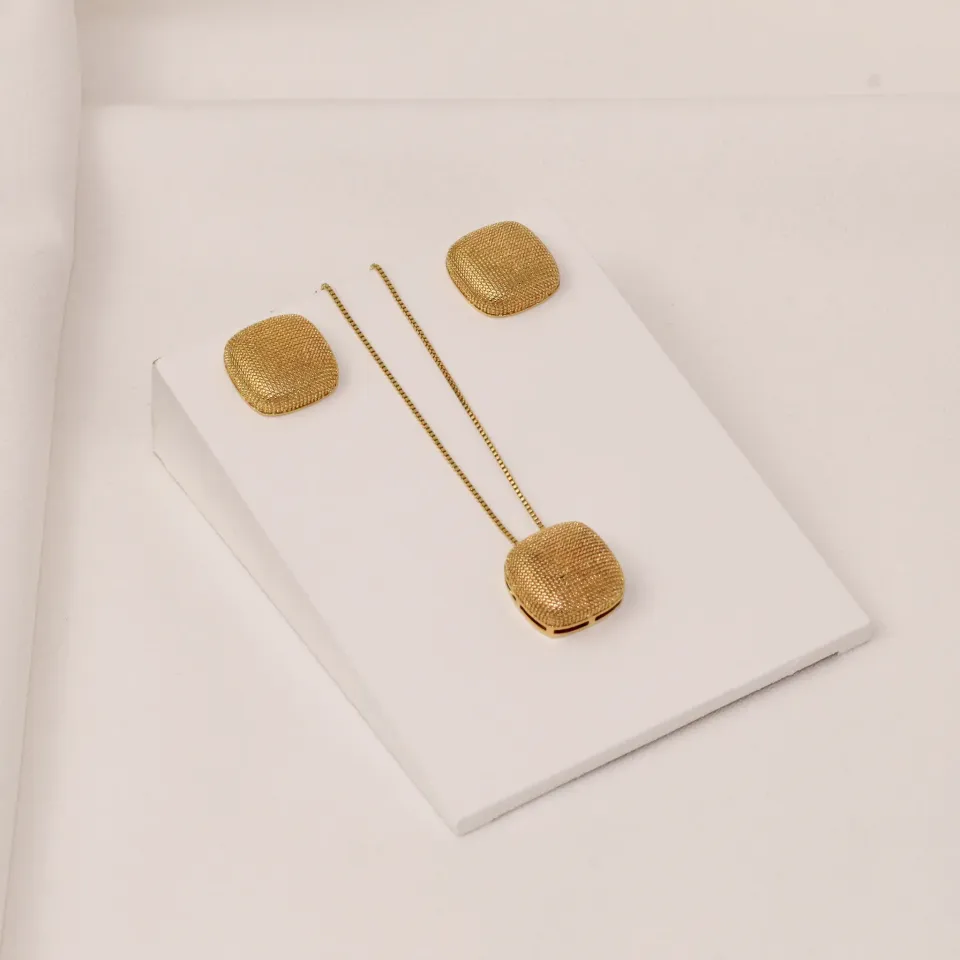 CONJUNTO DIAMANTADO QUADRADO BANHO OURO 18K