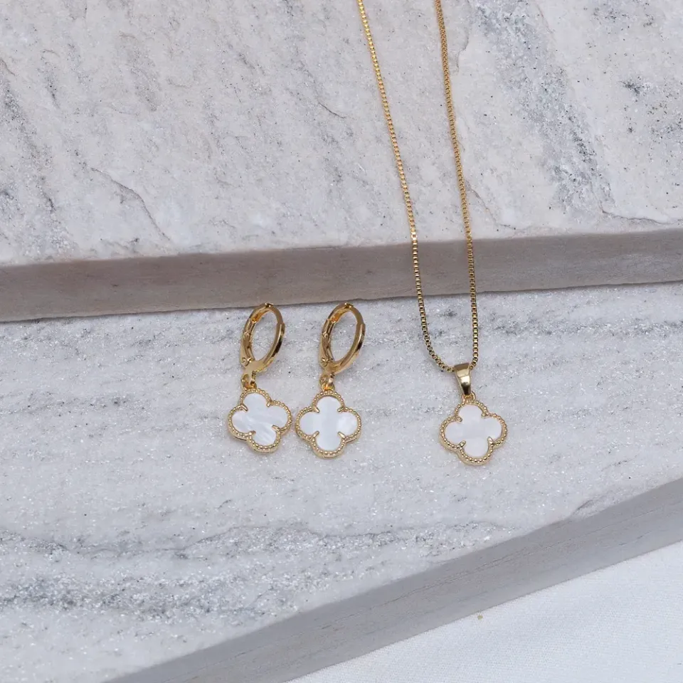 Conjunto Virginia Branco Perolizado em banho Ouro 18K