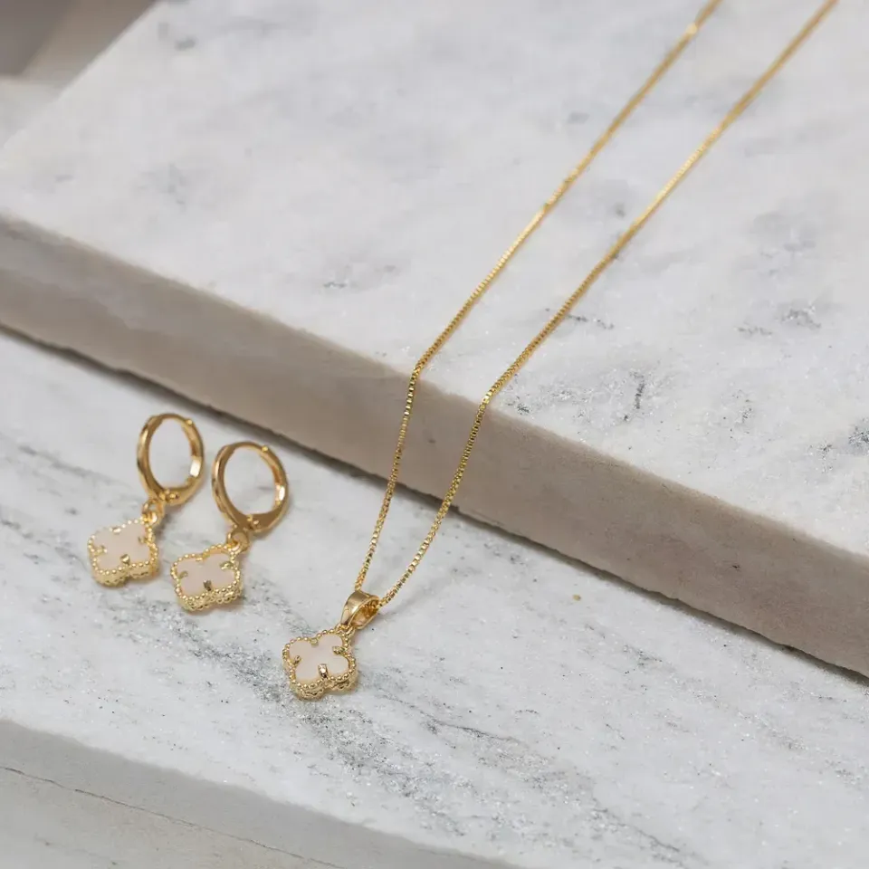 CONJUNTO VIRGÍNIA PEDRA MARFIM BANHO OURO 18K