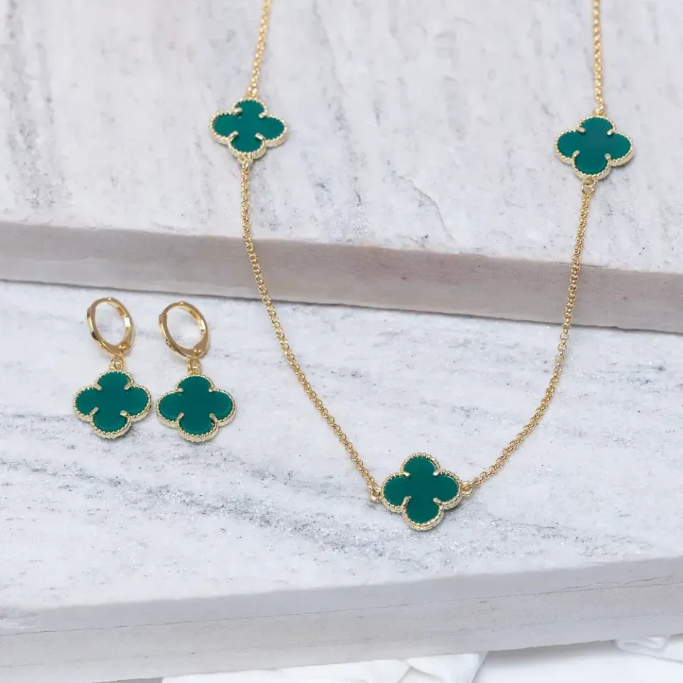 CONJUNTO CHOKER VIRGINIA VERDE BANHO OURO 18K
