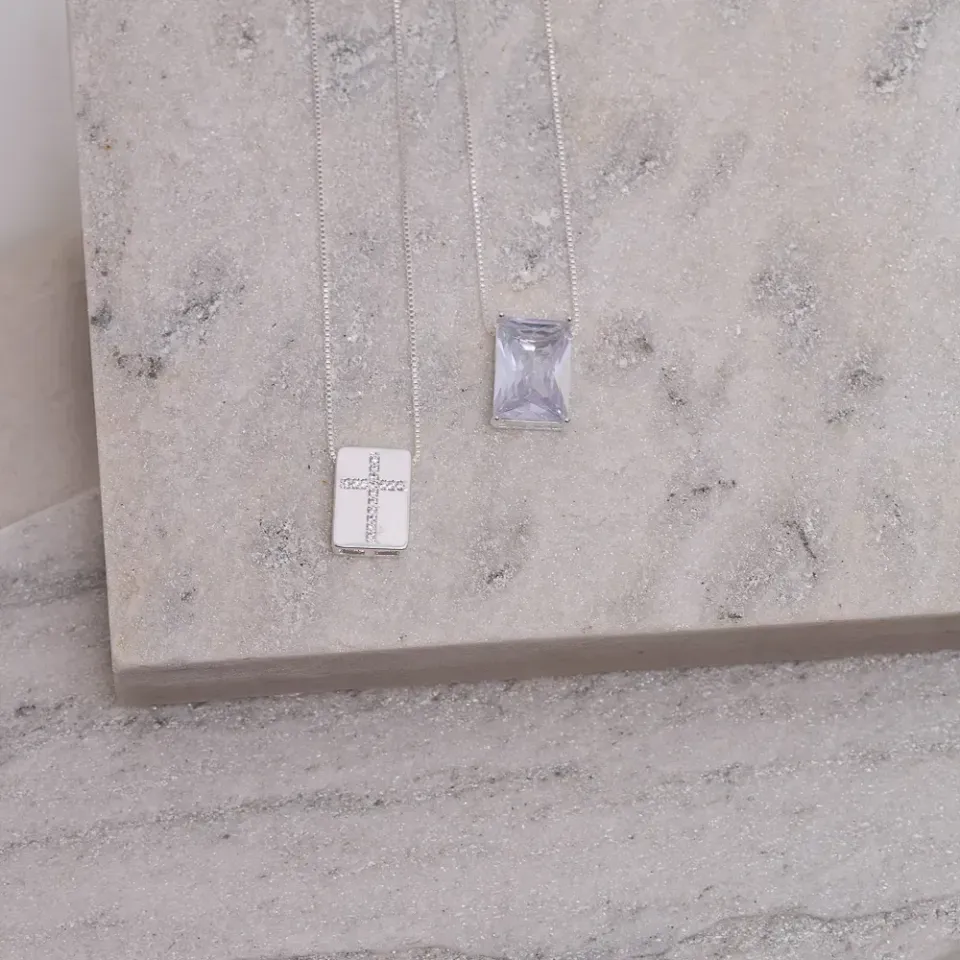 ESCAPULÁRIO CRUZ CRAVEJADO COM ZIRCÔNIAS E PEDRA CRISTAL BANHO PRATA