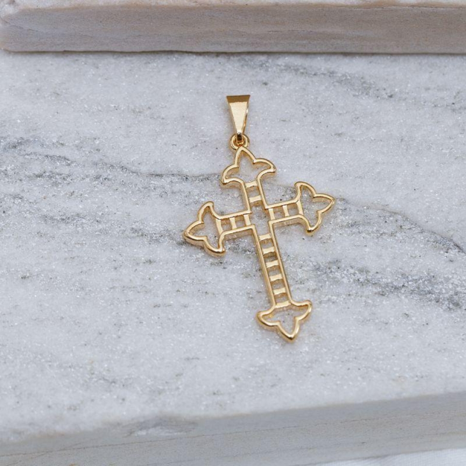 Pingente Crucifixo Trabalhado em banho Ouro 18K