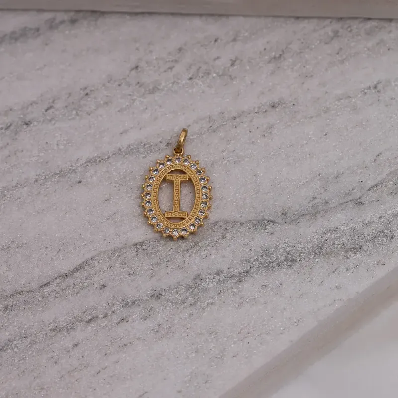 PINGENTE LETRA I COM ZIRCÔNIA BANHO OURO 18K