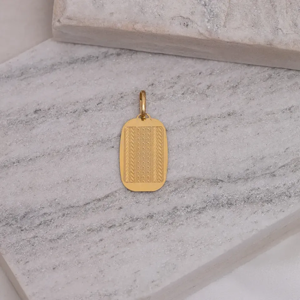 Pingente Placa Masculina Trabalhada em banho Ouro 18K