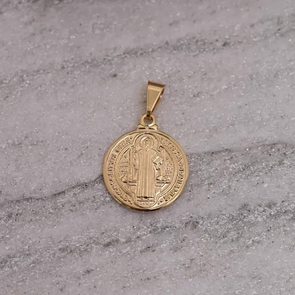 PINGENTE MEDALHA SÃO BENTO P BANHO OURO 18K