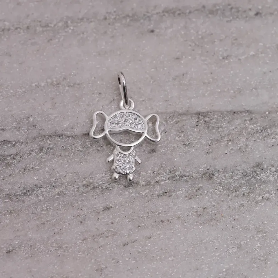 Pingente Filhos Menina Cravejado em banho Prata
