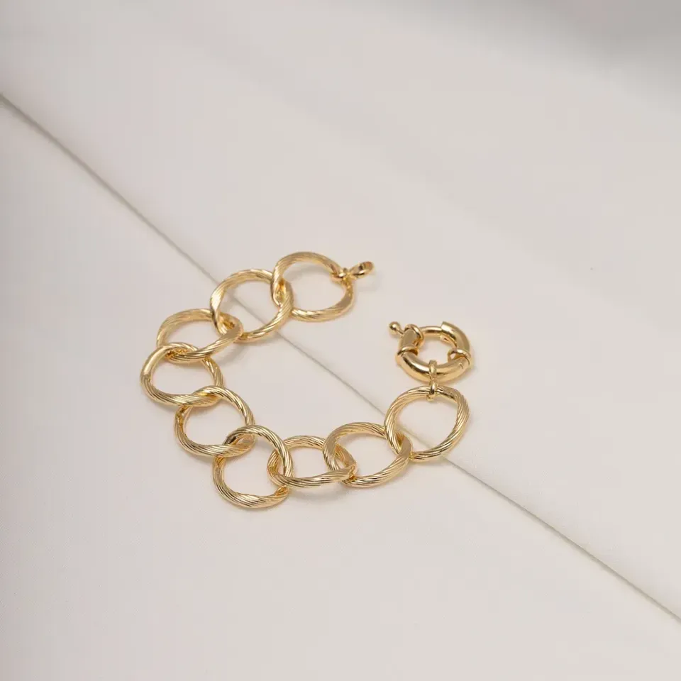 PULSEIRA ARGOLAS TRABALHADAS FECHO BOIA BANHO OURO 18K