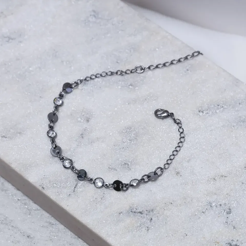 Pulseira Chapinha e Zircônias em banho Ródio Negro