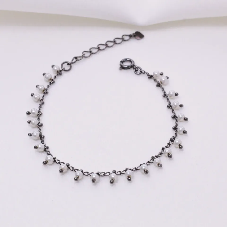 PULSEIRA COM PÉROLAS BANHO RÓDIO NEGRO