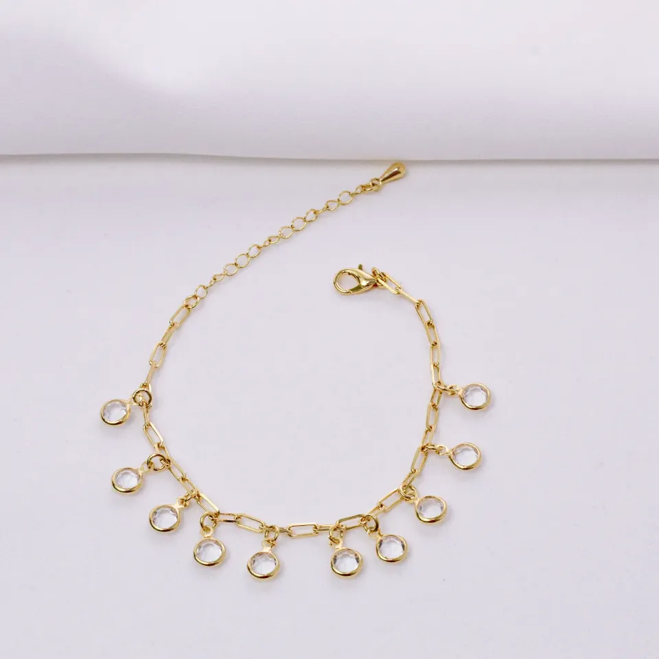 PULSEIRA COM PINGENTES CRISTAIS BANHO OURO 18K
