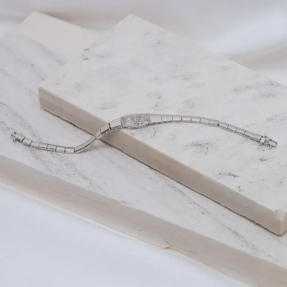 PULSEIRA CRAVEJADA COM ZIRCÔNIAS CRISTAIS BANHO RÓDIO BRANCO