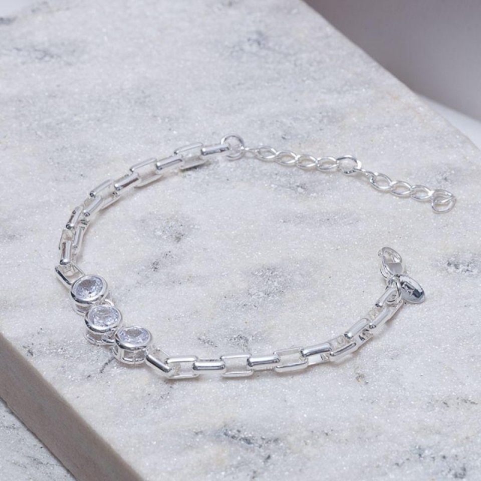 PULSEIRA ELOS CARTIER COM PEDRAS REDONDAS BANHO PRATA