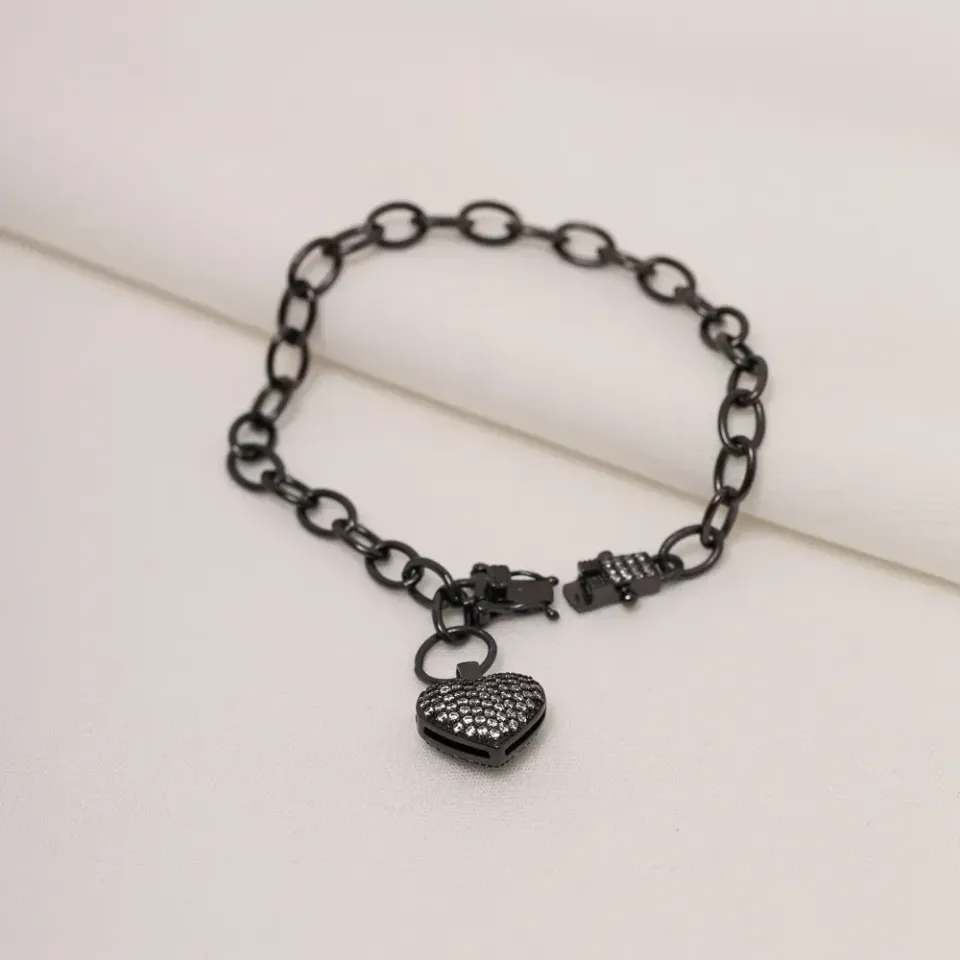 PULSEIRA CORAÇÃO CRAVEJADA COM ZIRCÔNIAS BANHO RÓDIO NEGRO