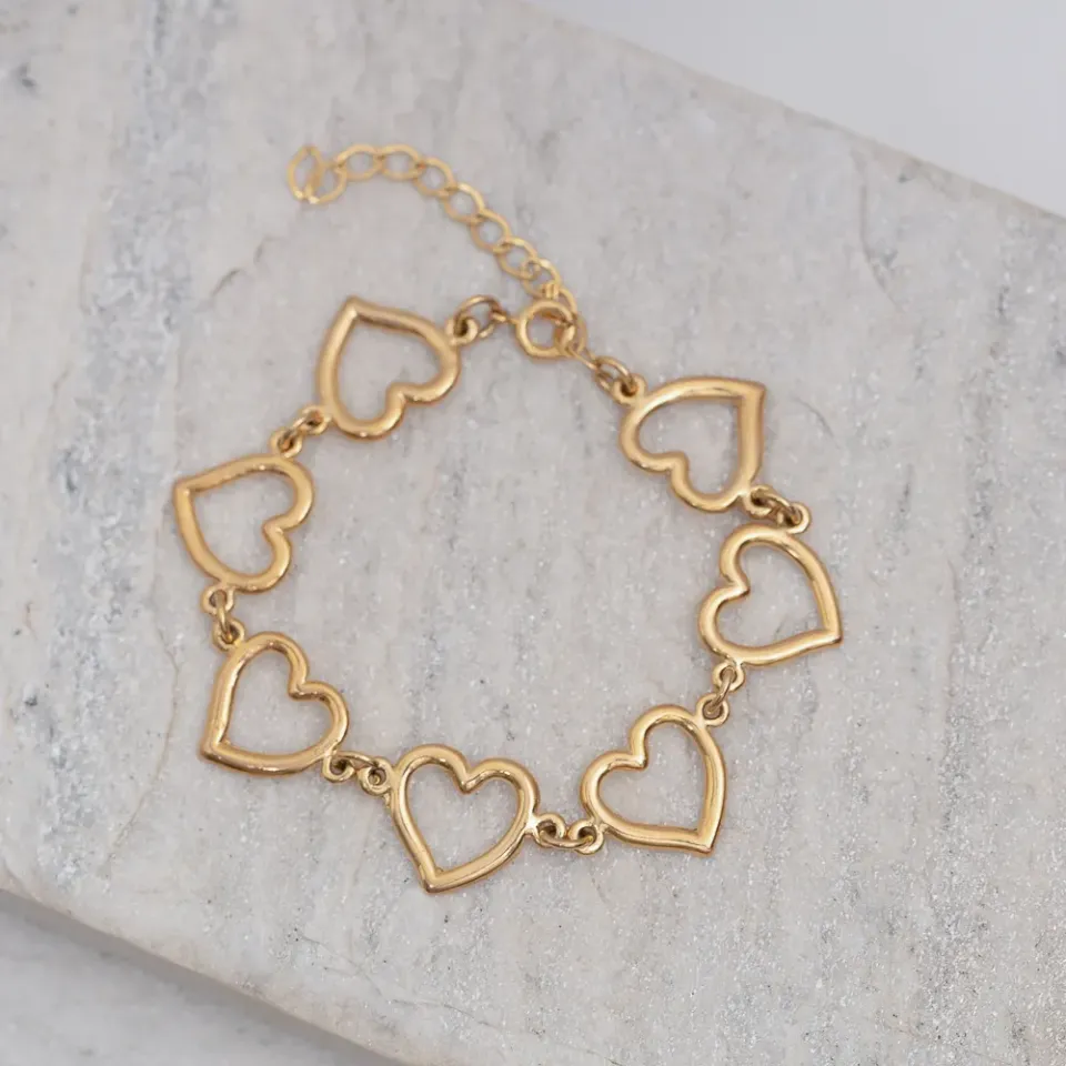 PULSEIRA CORAÇÕES LISOS VAZADOS BANHO OURO 18K
