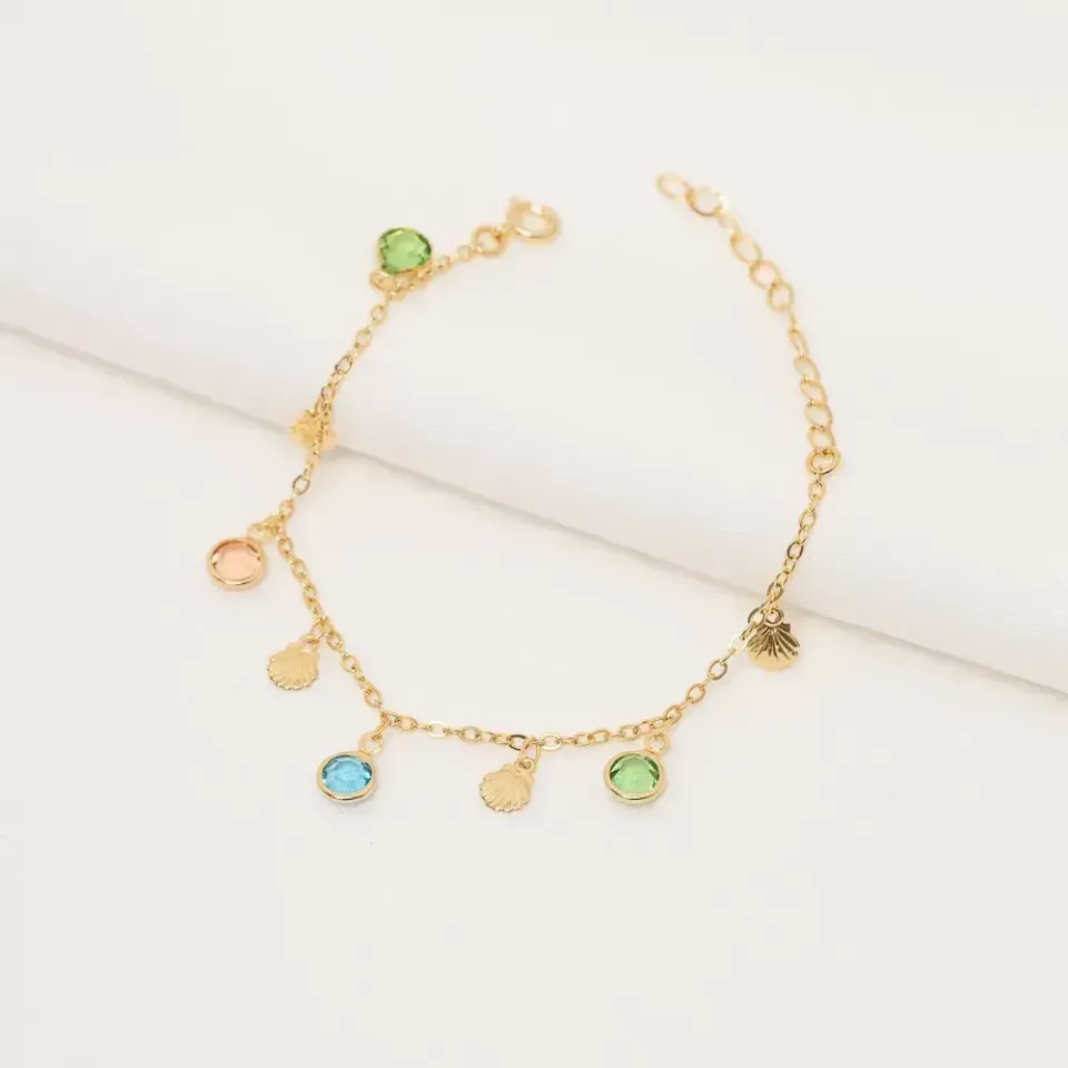 Pulseira Conchas e Pedras Coloridas em banho Ouro 18K
