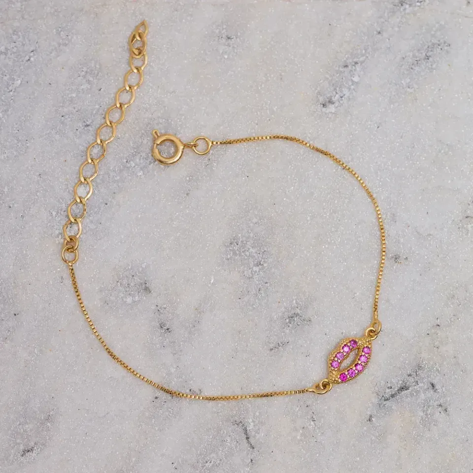 PULSEIRA BOCA CRAVEJADA COM ZIRCÔNIAS PINK BANHO OURO 18K