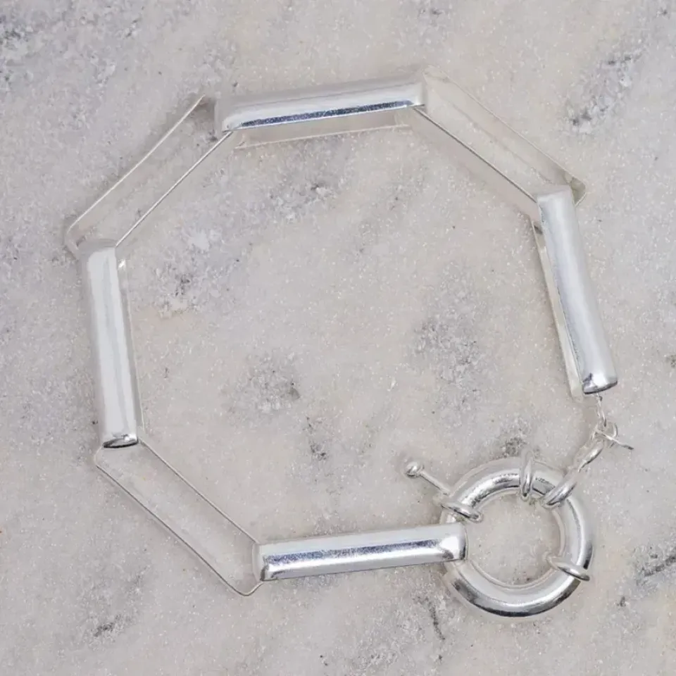 Pulseira Elo Quadrado com Fecho Bóia em banho Prata