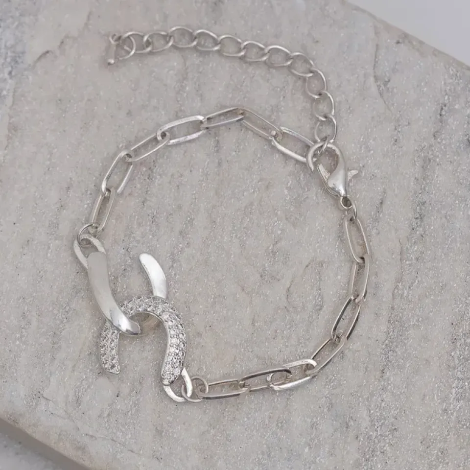 PULSEIRA INFINITE ELOS CARTIER CRAVEJADA COM ZIRCÔNIAS CRISTAIS BANHO PRATA