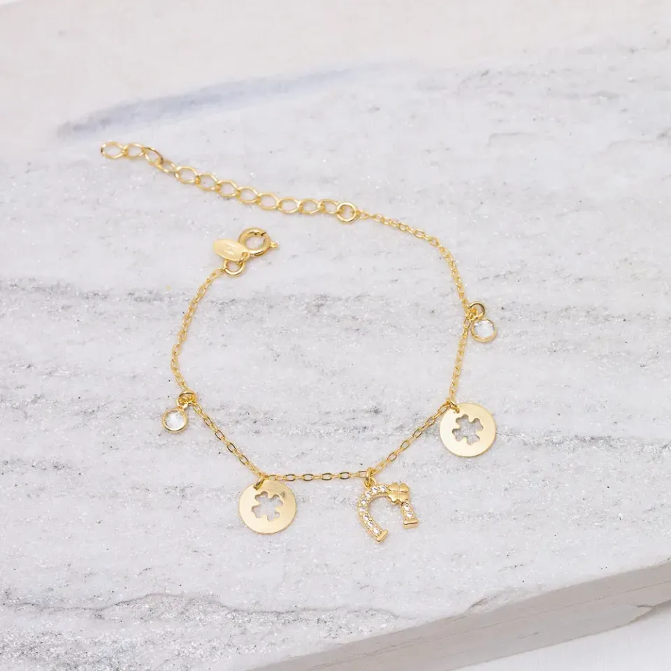 PULSEIRA FERRADURA E TREVO BANHO OURO 18K