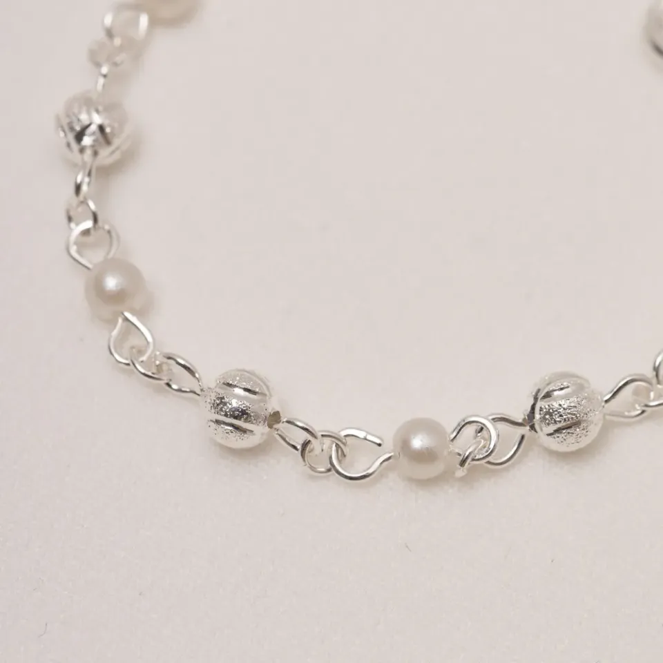 PULSEIRA INFANTIL BOLINHA FOSCA COM PÉROLA BANHO PRATA