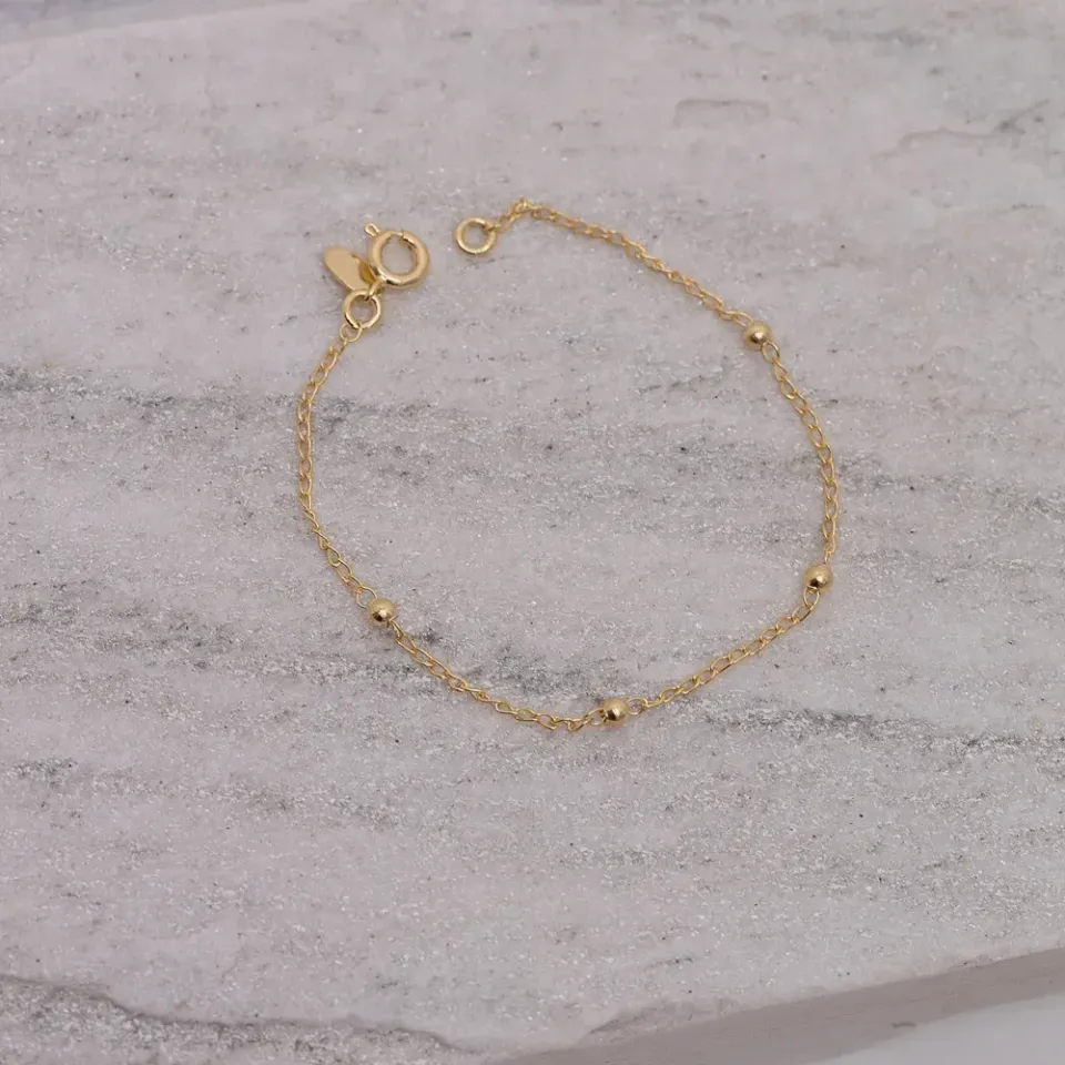PULSEIRA INFANTIL COM BOLINHAS BANHO OURO 18K