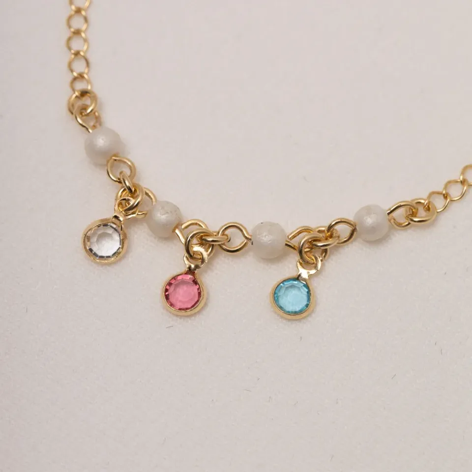 PULSEIRA INFANTIL COM PEDRAS COLORIDAS E PÉROLA BANHO OURO 18K