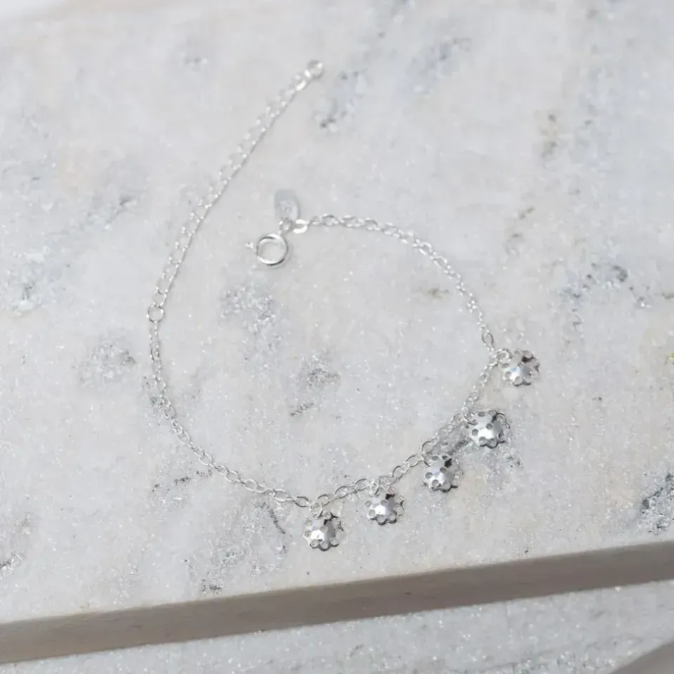 PULSEIRA INFANTIL PINGENTES FLOR BANHO PRATA