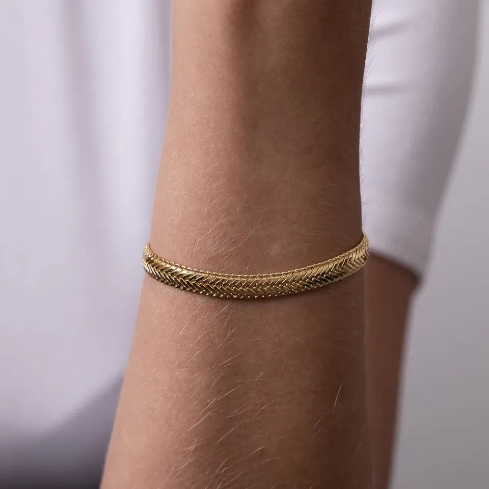 PULSEIRA LAMINADA TRABALHADA BANHO OURO 18K