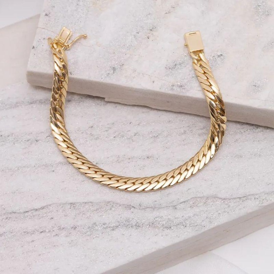 PULSEIRA MASCULINA GRUMET POLIDA BANHO OURO 18K