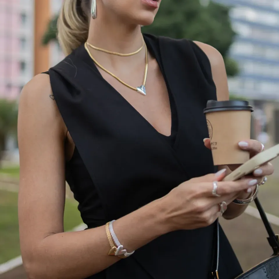 PULSEIRA OCA ACHATADA COM CORAÇÃO LISO BANHO OURO 18K