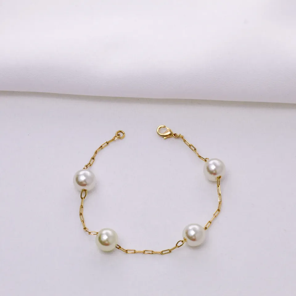 PULSEIRA BOLINHA PÉROLA BANHO OURO 18K