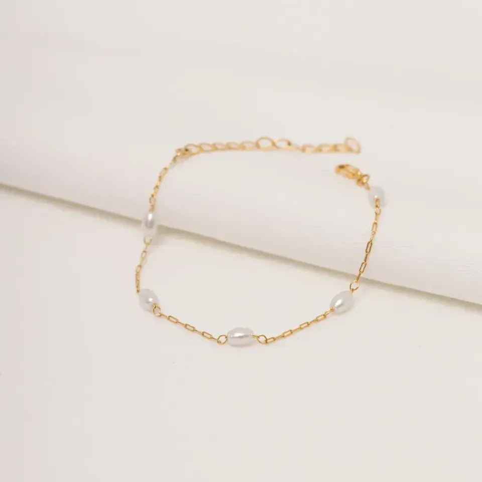 PULSEIRA PÉROLAS OVAIS BANHO OURO 18K