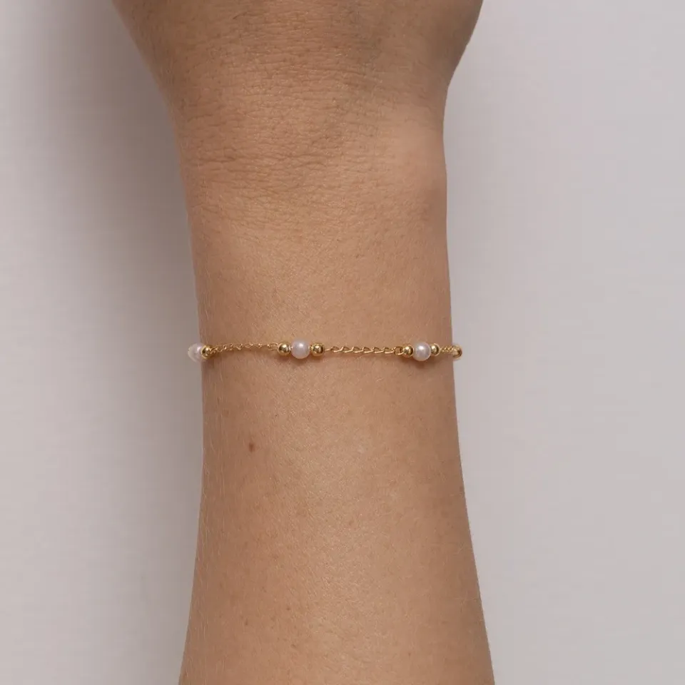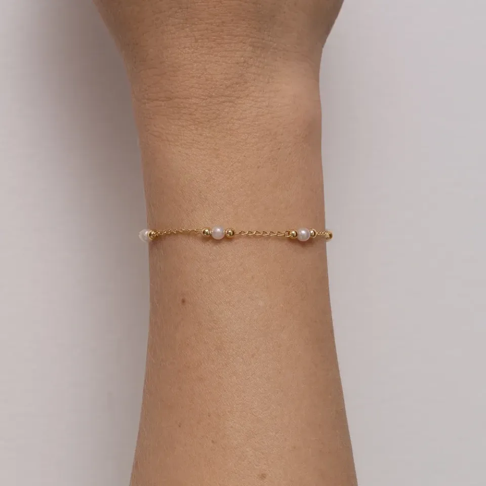 PULSEIRA BOLINHA E PÉROLA P BANHO OURO 18K