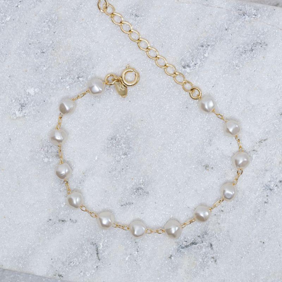 PULSEIRA PÉROLA ORGÂNICA BANHO OURO 18K
